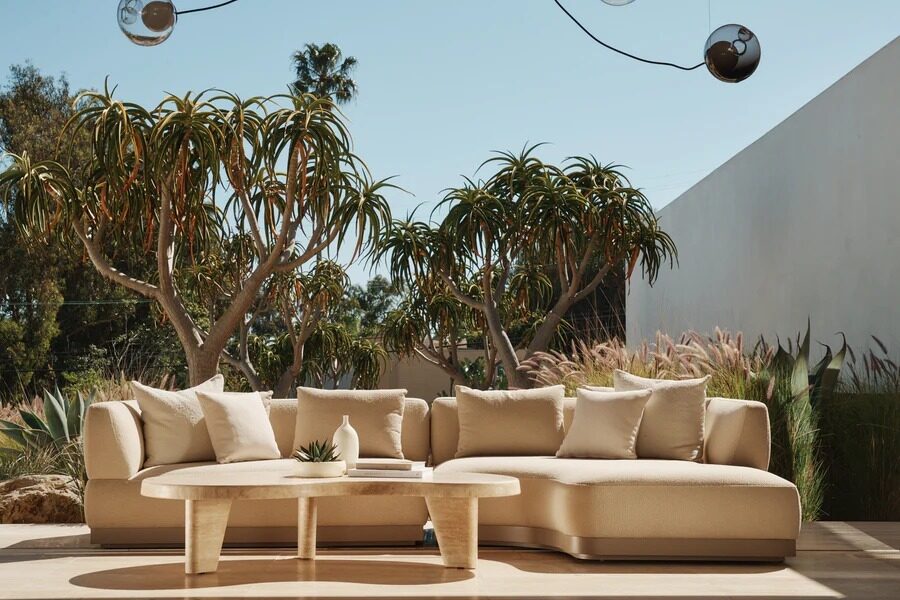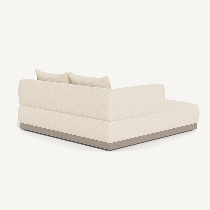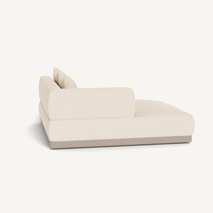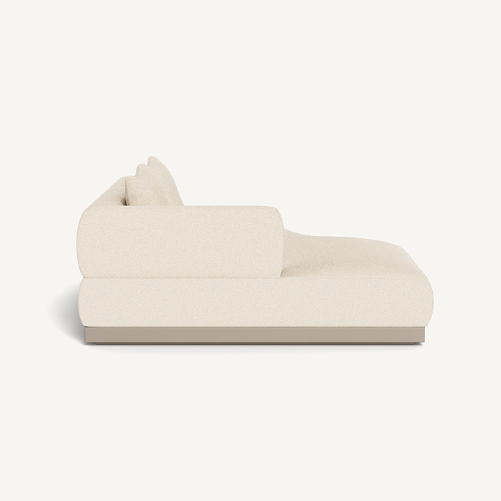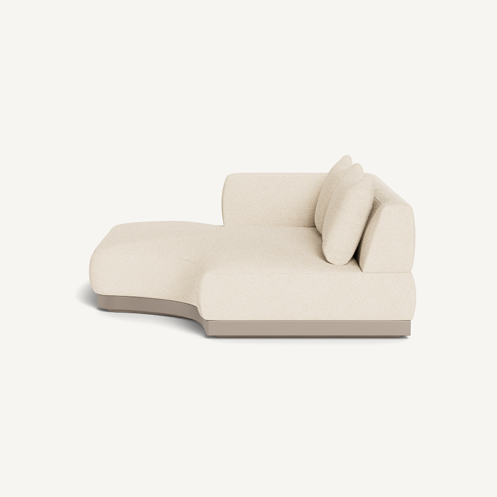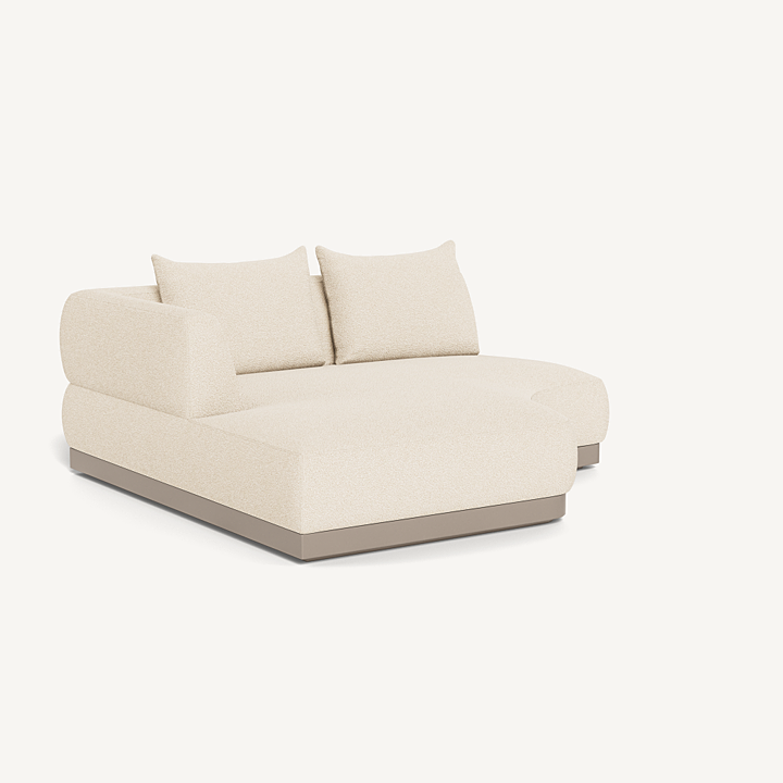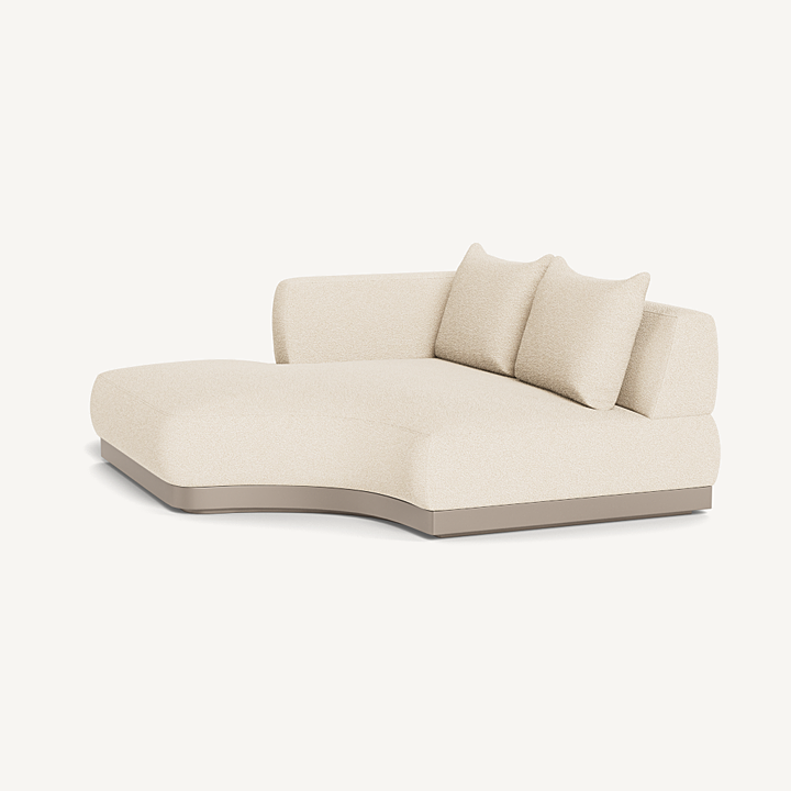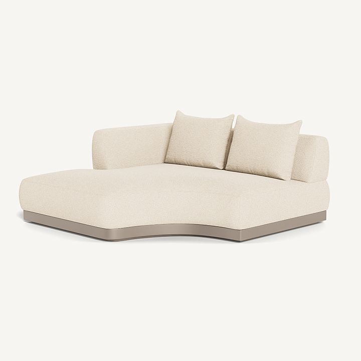 Our Amalfi collection brings Italian upholstery to the outdoors. Part of our sectional collection, the Amalfi Curved Chaise Left is unmatched luxury — enjoy supportive comfort with a structured tight seat and back in premium Italian fabric in a range of neutral tones on an extruded aluminum plinth base in Asteroid or Taupe, entirely and surprisingly made from 100% outdoor materials. Used as a stand–alone or extended with other sectional sofa components, this contemporary sofa further blurs the lines between indoor&outdoor living and instantly elevates any space. Pair it with an opposite 2 Seat 1 Arm or Armless Sofa to create your perfect sectional sofa configuration.