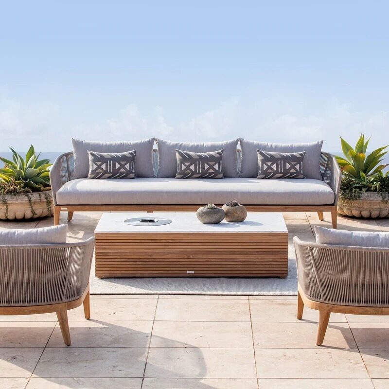The Avalon collection is a homage to the pristine coastline of Avalon Beach, Australia which has been the favoured destination for Sydney-siders looking to adopt a relaxed lifestyle. This collection is the laidback version of the popular Hamilton collection with its signature woven Olephin rope. The Avalon range is distinguished by beautiful teak frames with tapered legs.