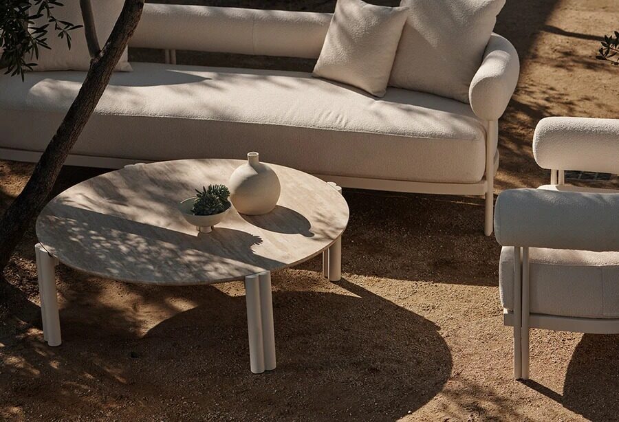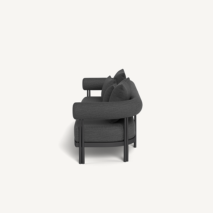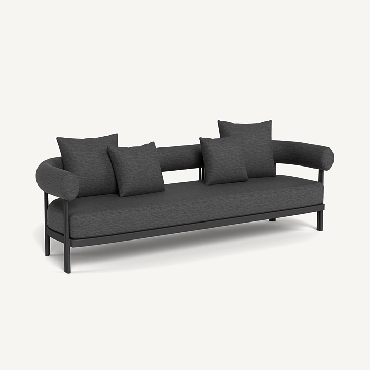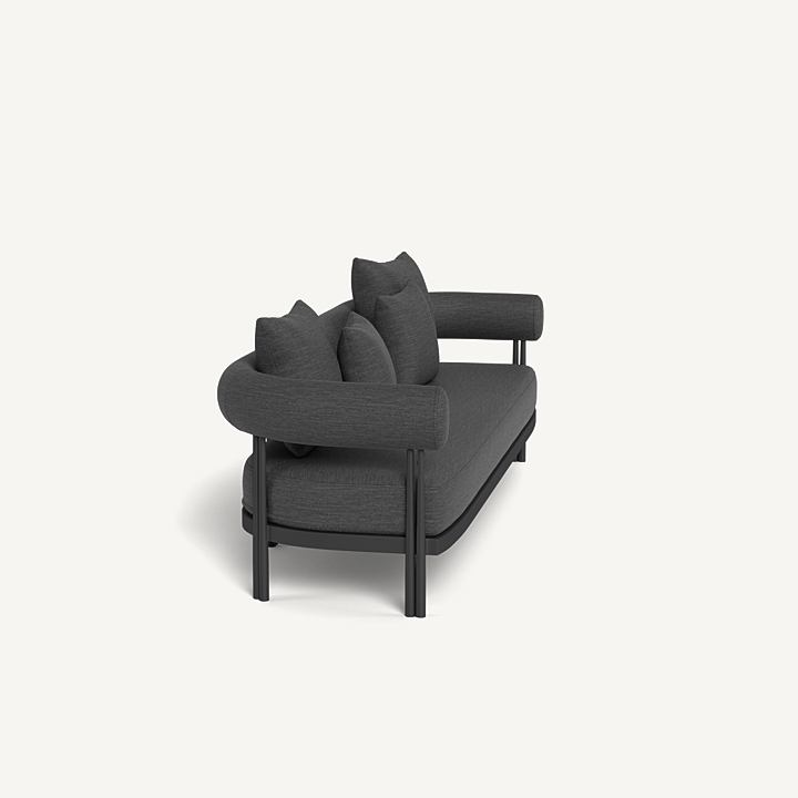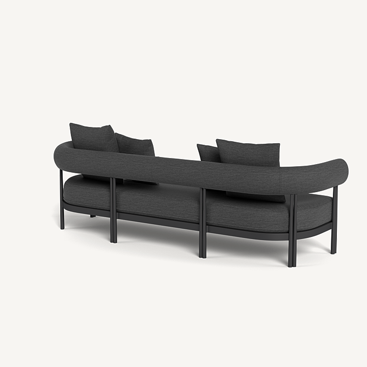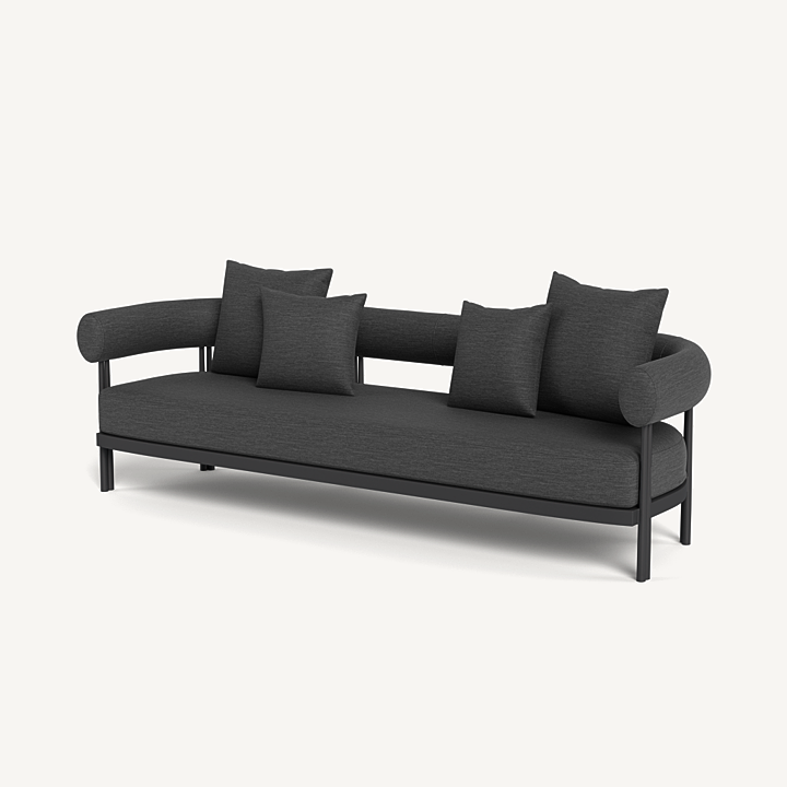Cove Luxe 3 Seat Sofa — Modern Outdoor Sofa with Powder–Coated Aluminum Frame and All–Weather Bench Cushion The Cove Luxe 3 Seat Sofa delivers contemporary outdoor comfort with a sleek powder–coated aluminum frame, signature sculpted bolster back, and a plush quick–dry bench cushion. Designed for durability and elegance, this luxury outdoor patio sofa offers versatile seating with a modern architectural touch—ideal for terraces, poolside lounges, or garden seating areas.