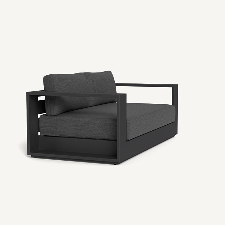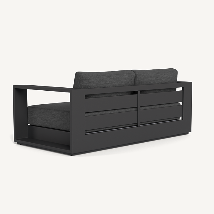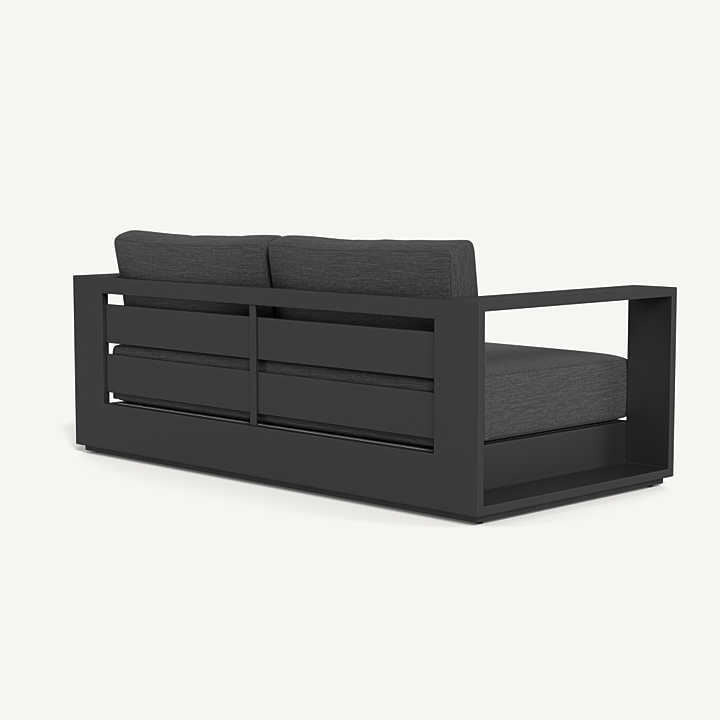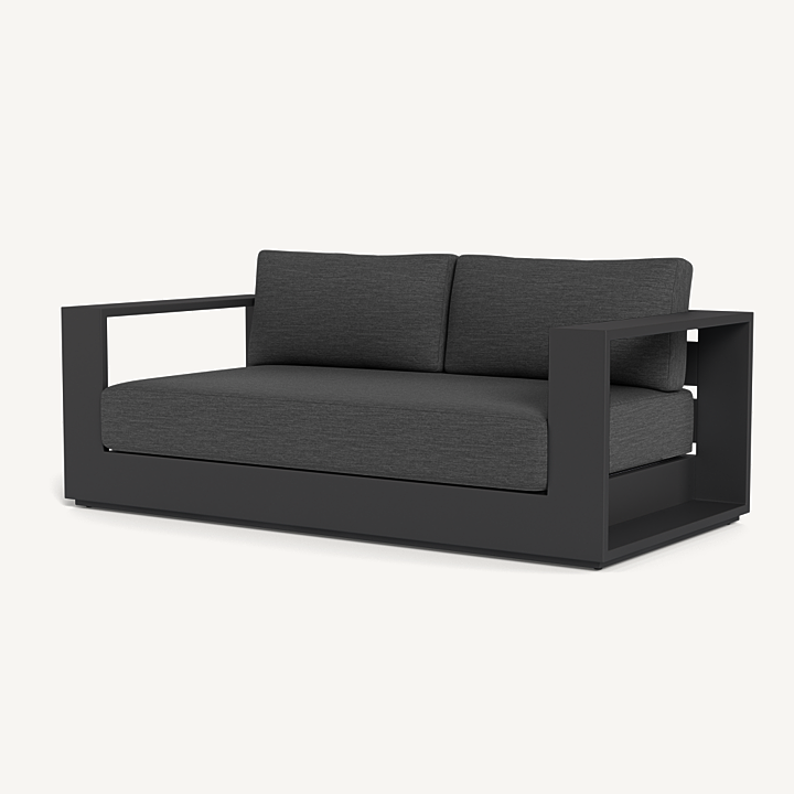 Our Hayman collection is a statement in simplicity with clean angles and modern styling. Defined by its wide arms, our low–profile Hayman 2 Seat Sofa was designed to be experienced — sink into ultimate relaxation with a deep bench cushion in a range of neutral tones supported by a Batyline sling suspension in Silver or White for added comfort, all crafted in a powder coated extruded aluminum frame available in Asteroid or White. Indoor comfort meets outdoor performance with this geometric modern sofa made for a variety of spaces.