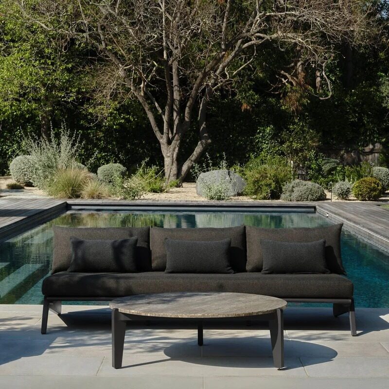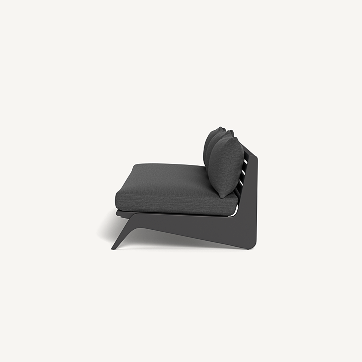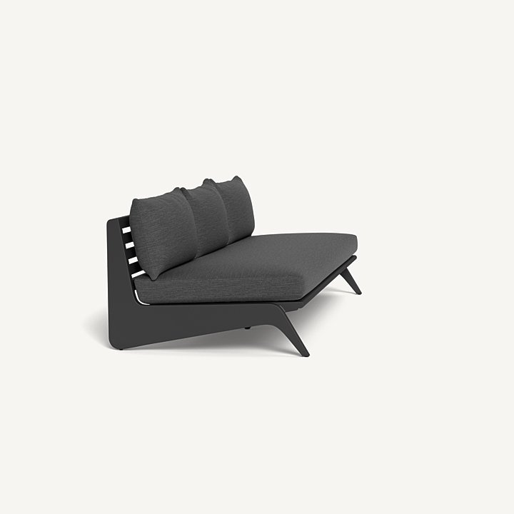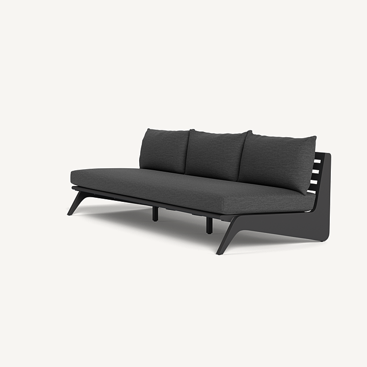 A collaboration with decorated interior designer Martyn Lawrence Bullard, our MLB collection now in aluminum balances modern proportions with a striking juxtaposition of outdoor materials. The MLB 3 Seat Armless Sofa is a standout — enjoy a plush deep bench cushion supported by a slatted extruded aluminum frame featuring dynamic angled legs. From the side, a striking zig-zag shape adds intrigue. The larger sofa option and a truly versatile statement piece, pair it with a Corner to extend it as a sectional or leave it as a stand-alone to let it shine.