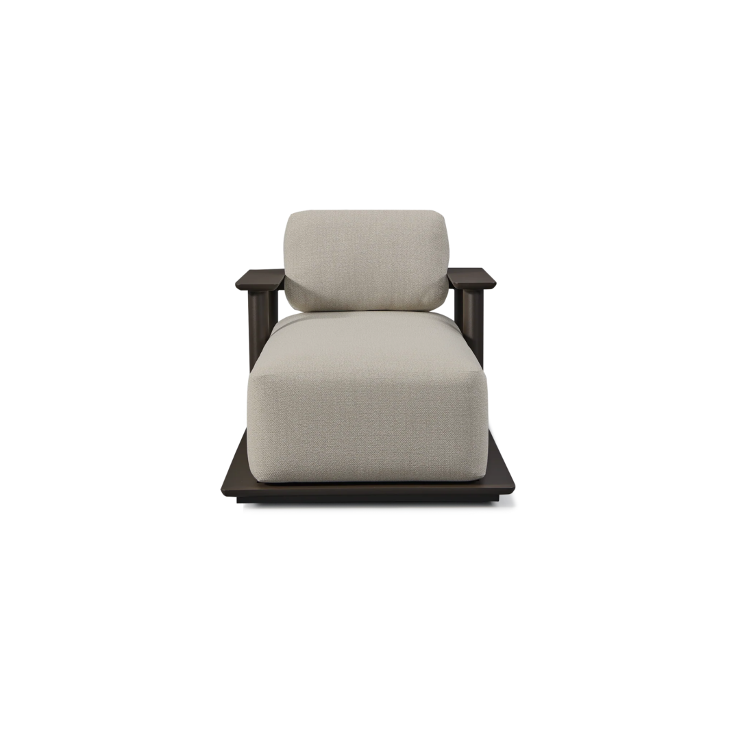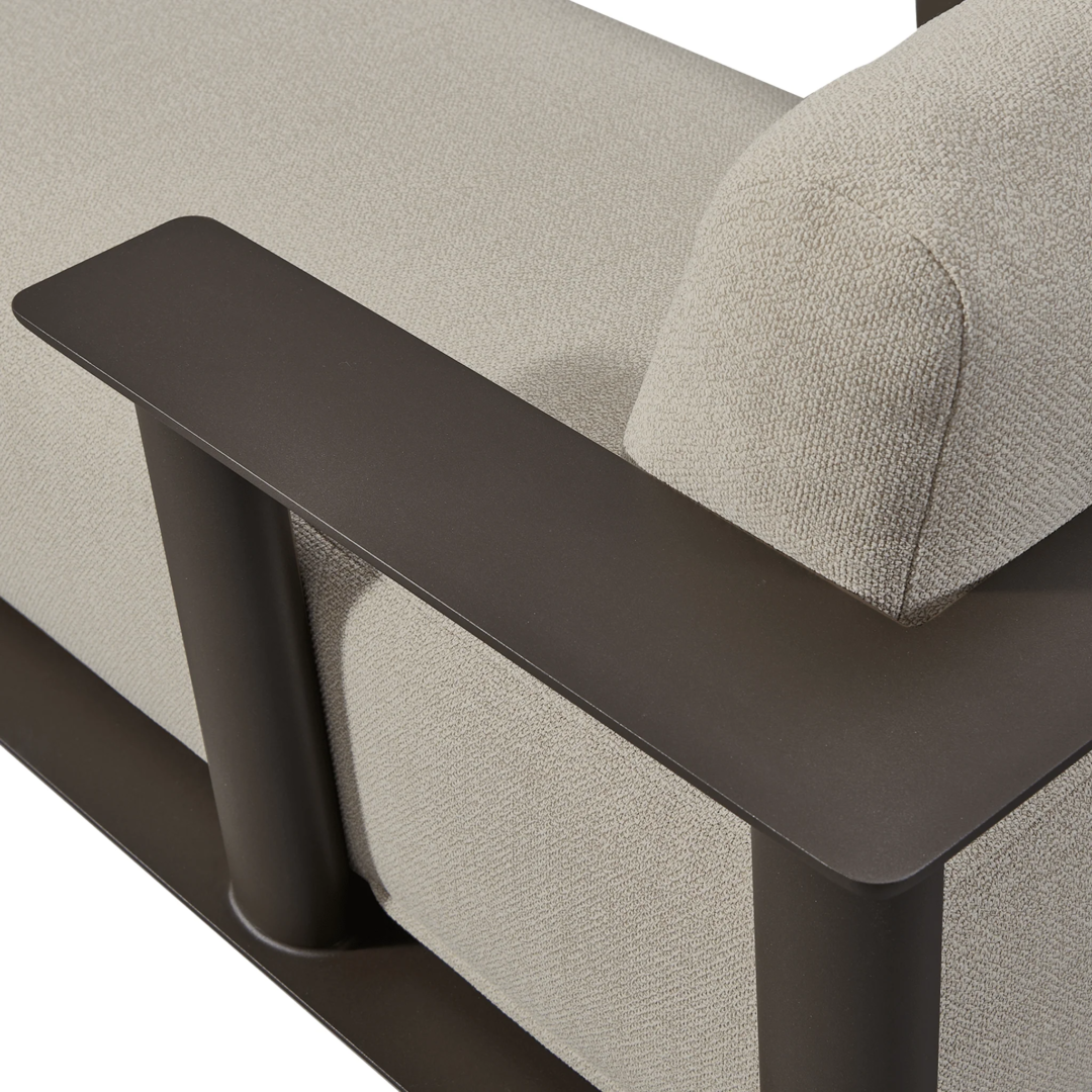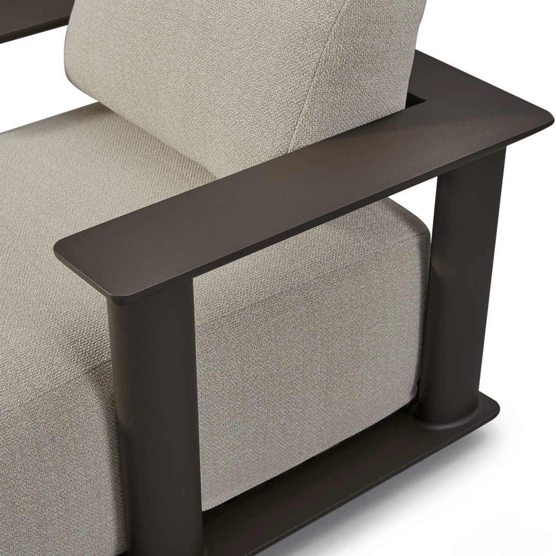 Design elements like oval–shaped legs elevate a geometrical silhouette, while deep seating and wide, flat arms create comfort for all–day lounging.