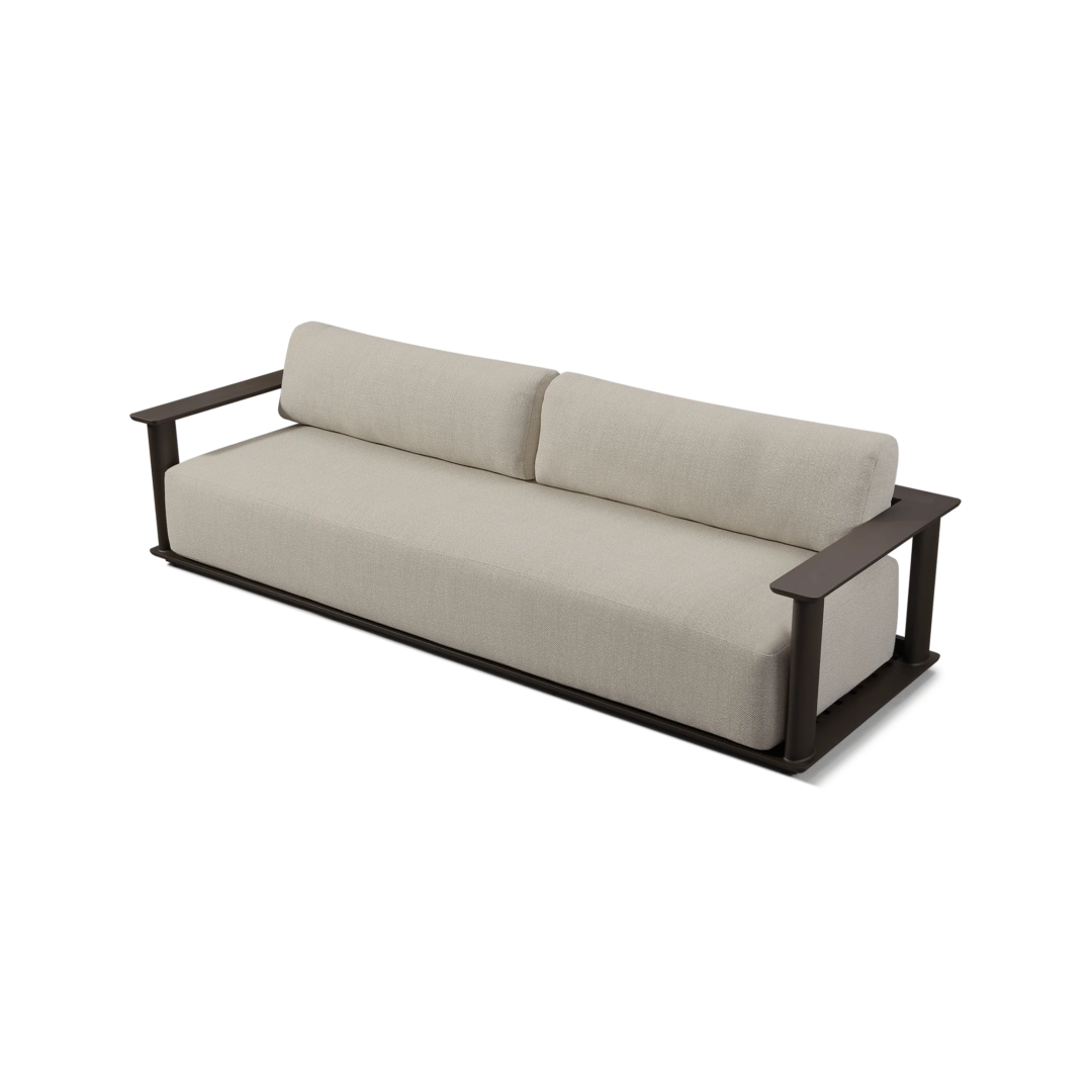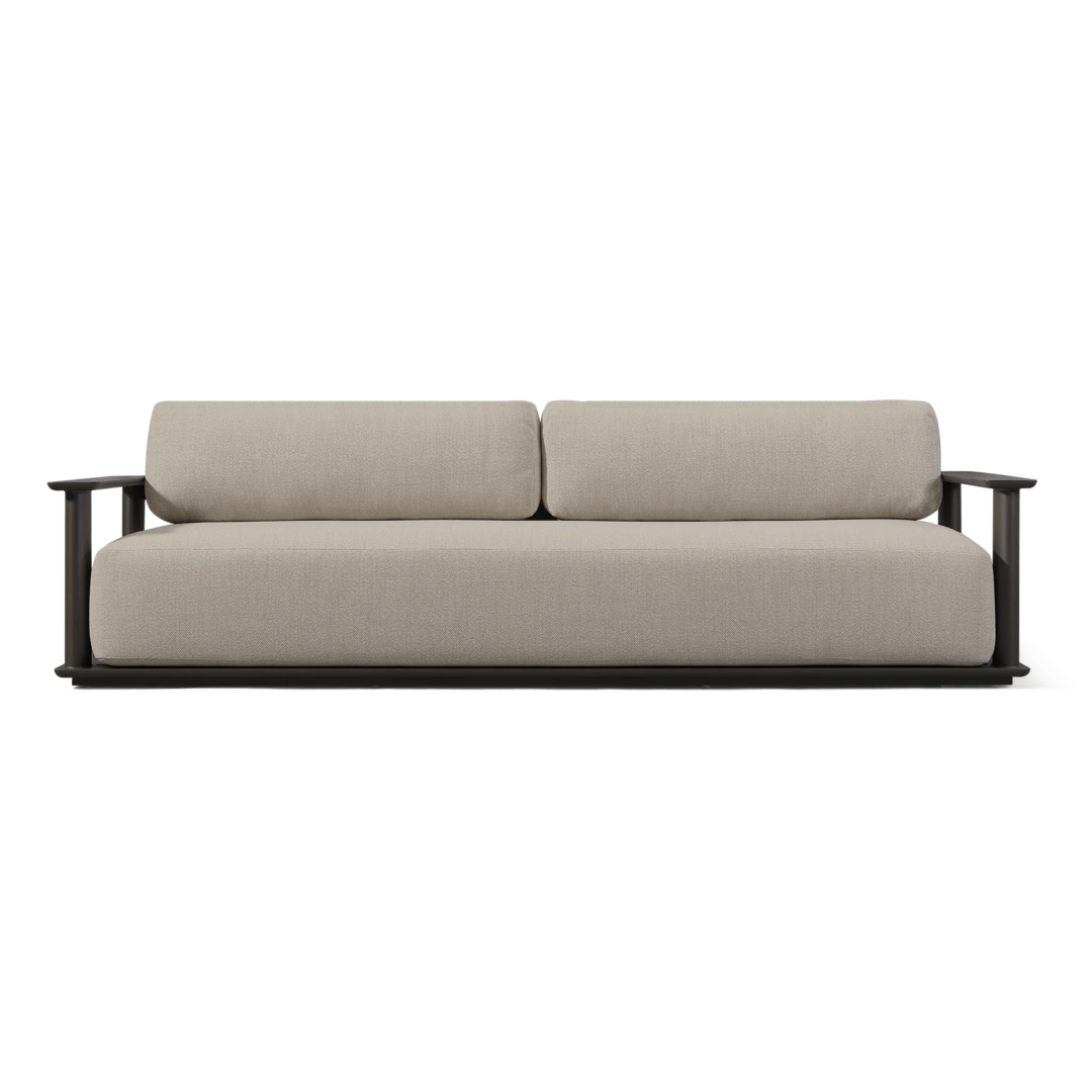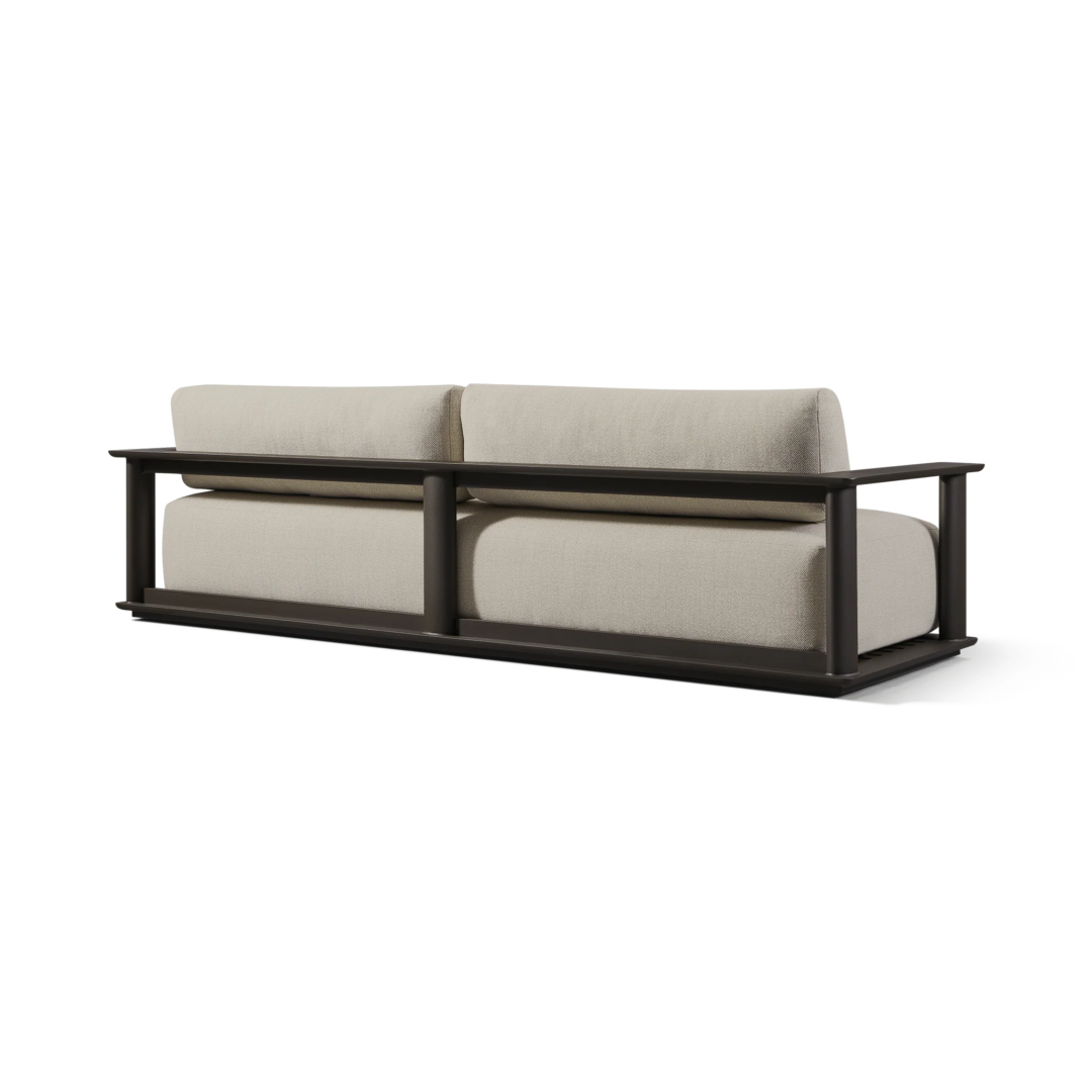 Design elements like oval–shaped legs elevate a geometrical silhouette, while deep seating and wide, flat arms create comfort for all–day lounging.