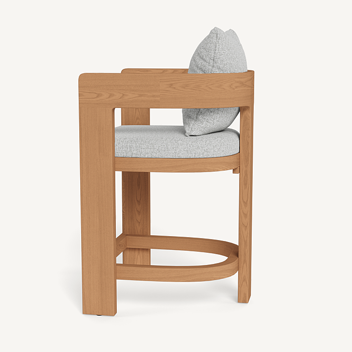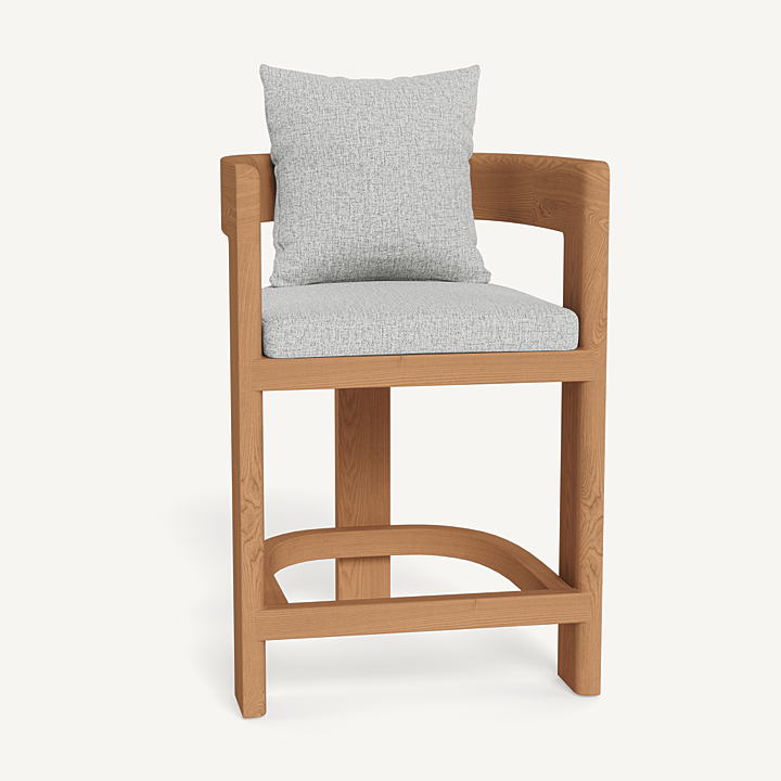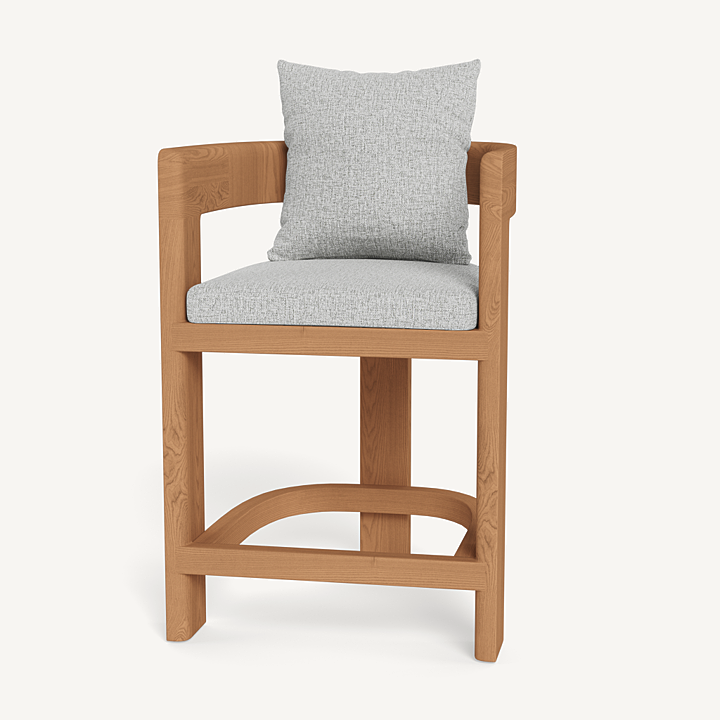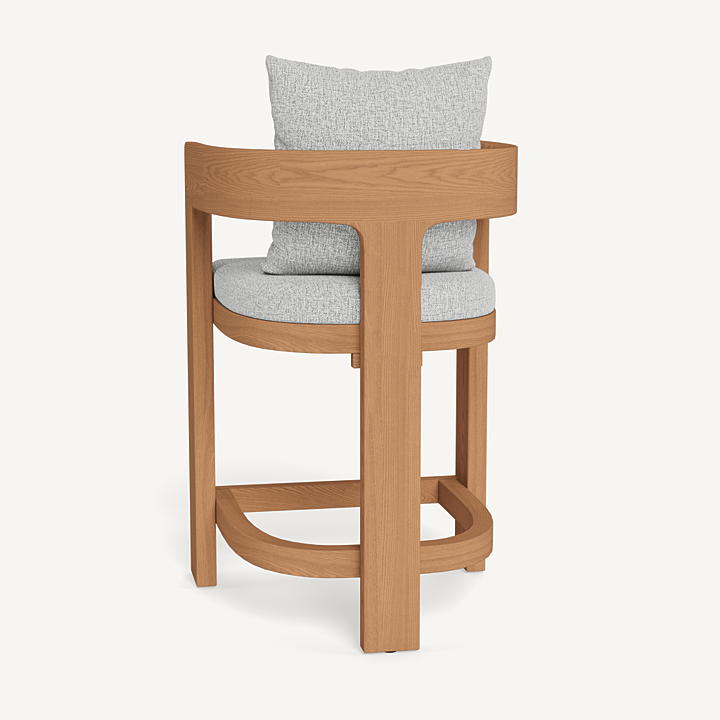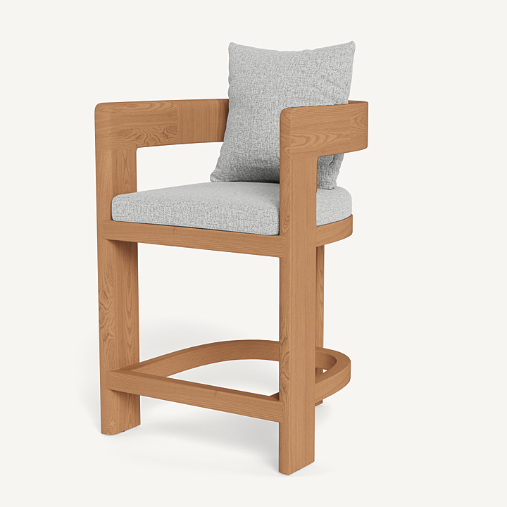 Our Victoria collection balances sculptural curves and right angles for true simplicity of proportion. The Victoria Teak Counter Stool completes your outdoor entertaining experience — featuring solid Indonesian teak tripod construction made to age gracefully with time. With a barrel back design and easy cushions for a comfortable sit, this contemporary outdoor counter stool brings harmony to a variety of spaces. Available in bar and dining heights.