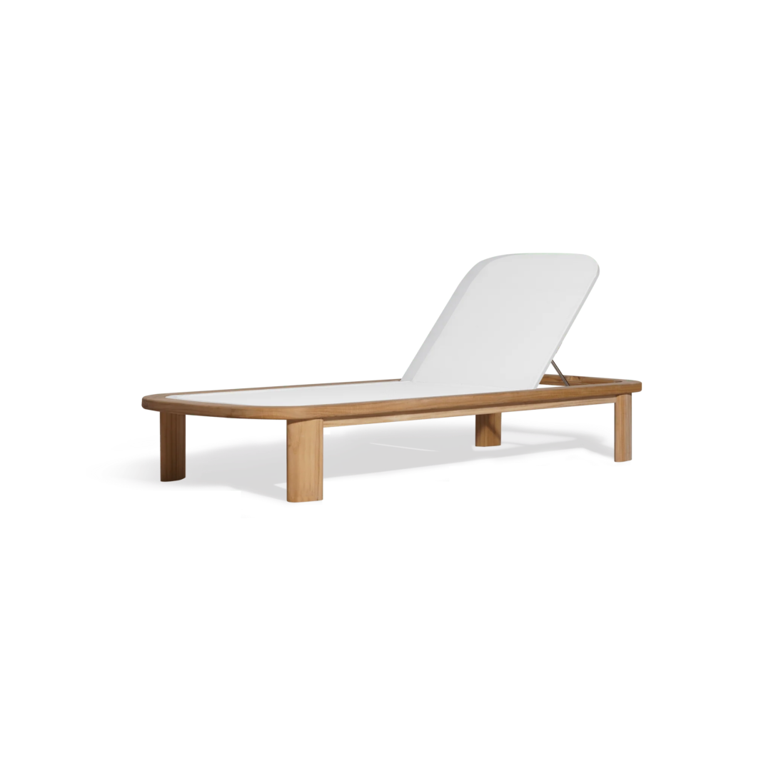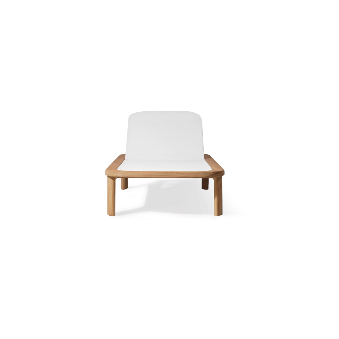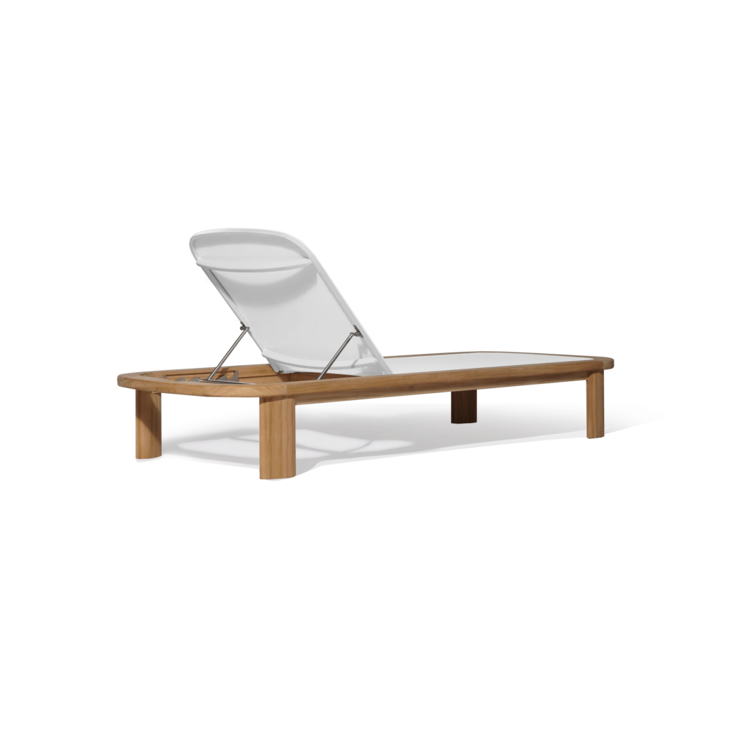 An elegant study in modern contemporary design with scale and proportion in perfect harmony. Feminine in spirit but contemporary in feel, the Chloe Sun Lounge is a sophisticated and inviting piece—enjoy your choice of a comfortable Batyline mesh suspension for easy maintenance or an all–weather cushion (sold separately) on a solid teak frame. The legs echo the collection’s signature shape. With an adjustable back for maximum relaxation, this sun lounge breathes relaxation into your outdoor space. Batyline sling