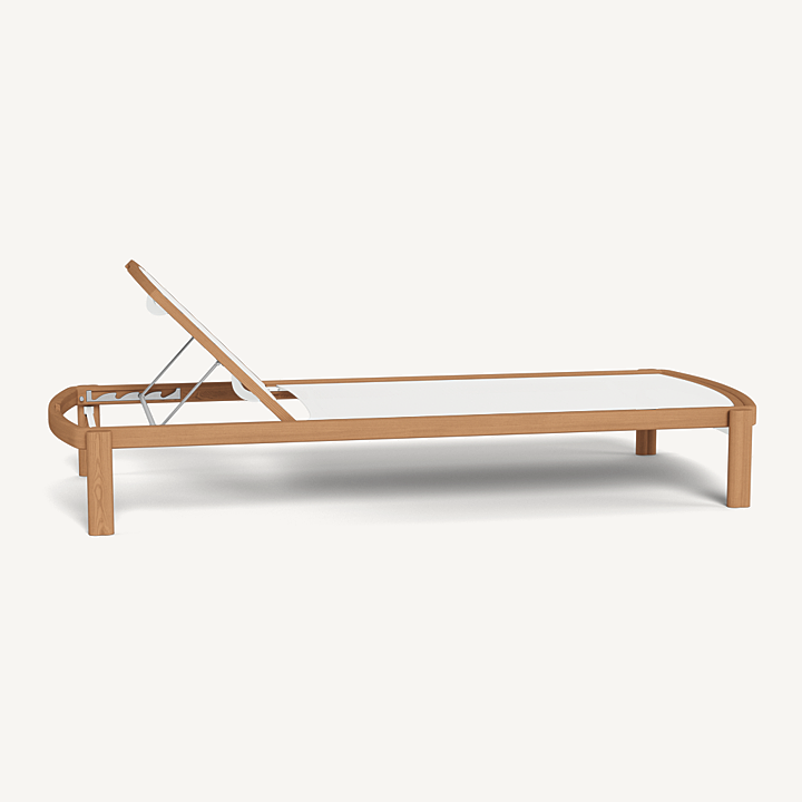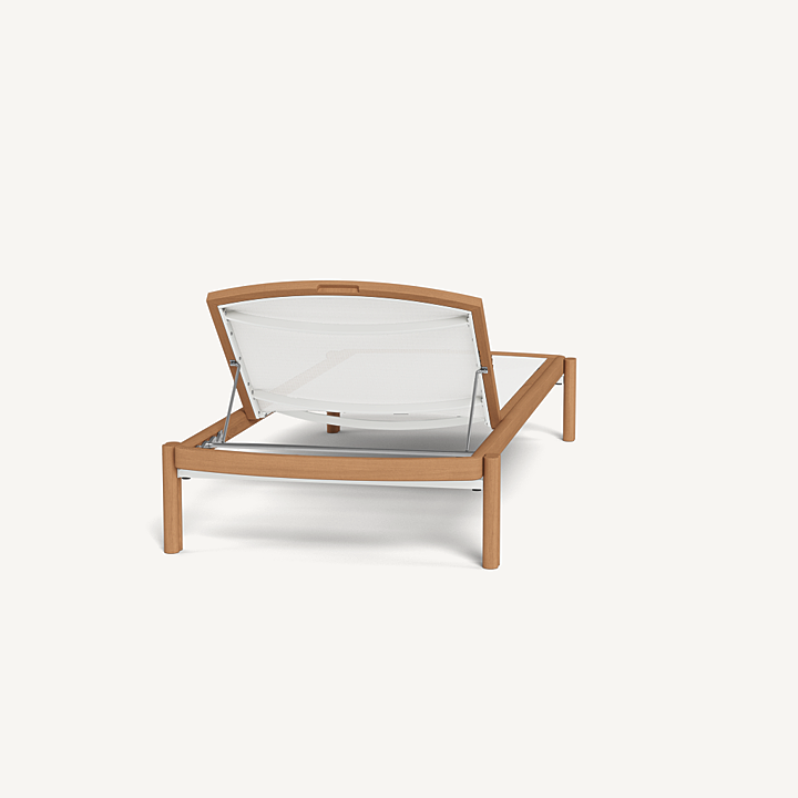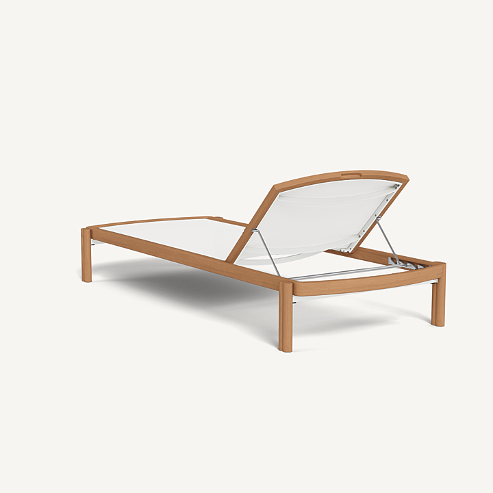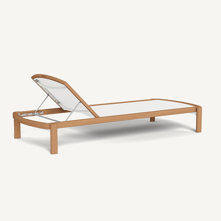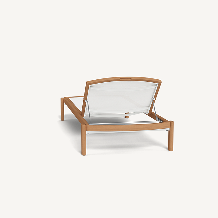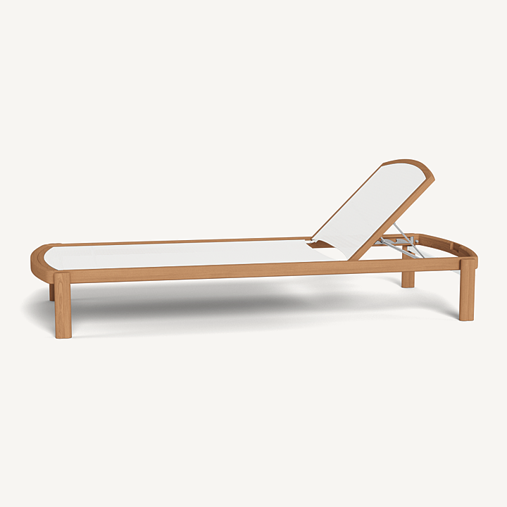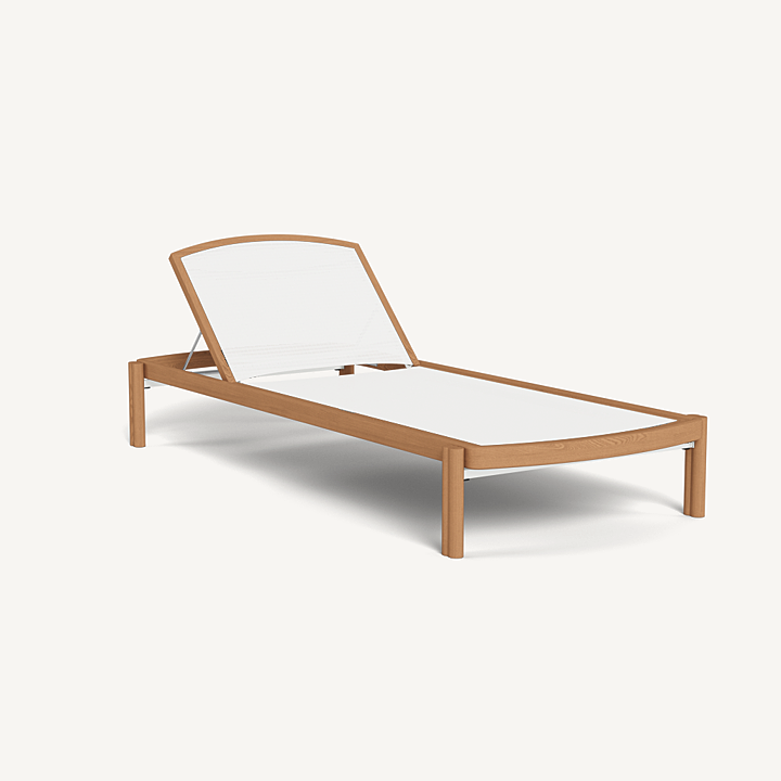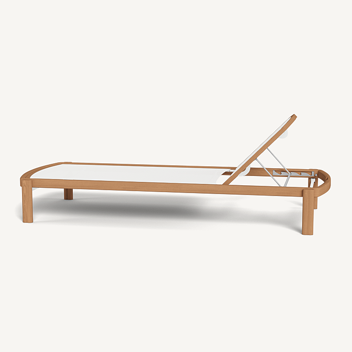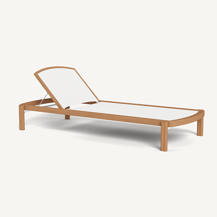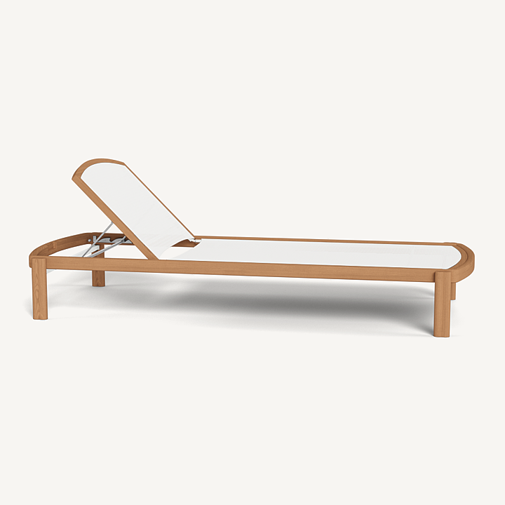Influenced by modern Australian architecture and landscapes, our Cove Teak collection features special details like double cylindrical legs and curved edges that create soft sculptural silhouettes. The Cove Teak Stacking Sun Lounge is contemporary comfort, featuring a refined solid teak frame with an architectural double leg detail and special curved shape that echoes the design language signature to this series. Enjoy a Batyline sling suspension made for easy use and maintenance. Tracery and light with a footprint to match, this comfort-driven outdoor stacking sun lounge is a versatile design element for any space. Legs are specially designed to allow for effortless stacking and storage.