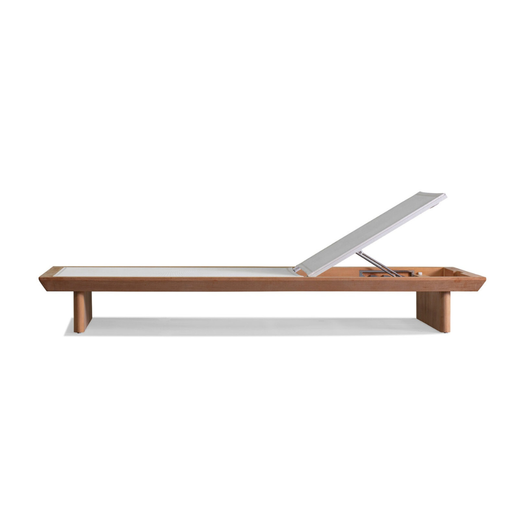 Relax in style in Martyn Lawrence Bullard’s modern style outdoor Sun Lounge with a wide arm for resting your favorite drink. The MLB Sun Lounge is a chaise lounge, perfect for those hot summer days next to the pool or just soaking up some sun on your outdoor patio. The MLB Sun Lounge is finished with Harbour’s signature Indonesian A-Grade teak in natural and charcoal (coming soon) finishes and the seating material is Ferrari Batyline.