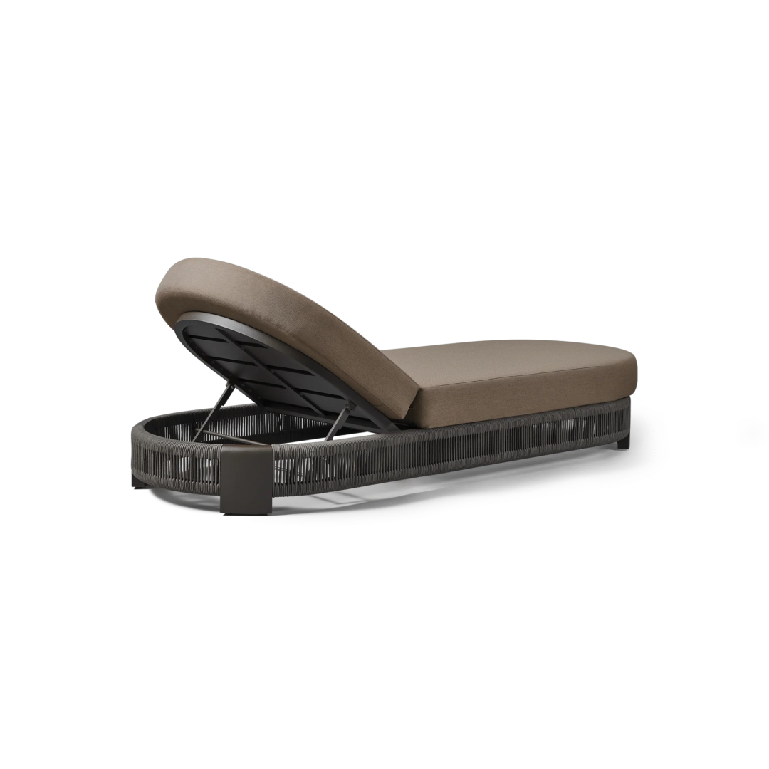 A nod to Sydney’s iconic Palm Beach with its stately coastal pines. Rounded backs, vertical rope detailing and a harmonious mix of materials infuse classic silhouettes with modern elegance. Transitional in spirit, the Palm Beach Aluminum Sun Lounge is a refreshing update to our signature classics—enjoy a comfortable, adjustable and hinged cushion on a supportive slatted suspension in the just–released colorway of Stone. The solid teak pill–shaped frame features vertically woven all–weather rope and plays with materials and form. This comfort–driven and unique piece seamlessly blends with many styles and in many outdoor spaces.