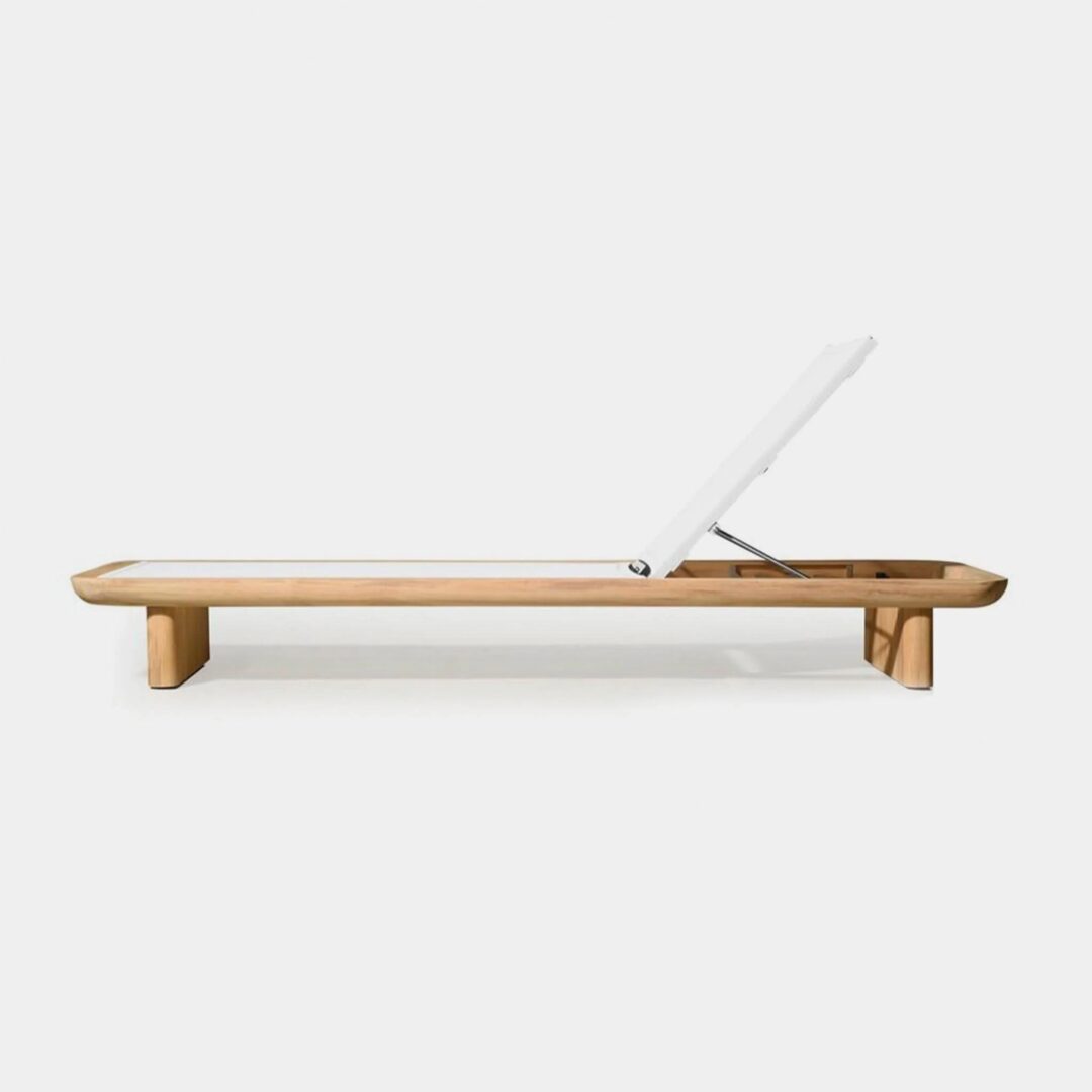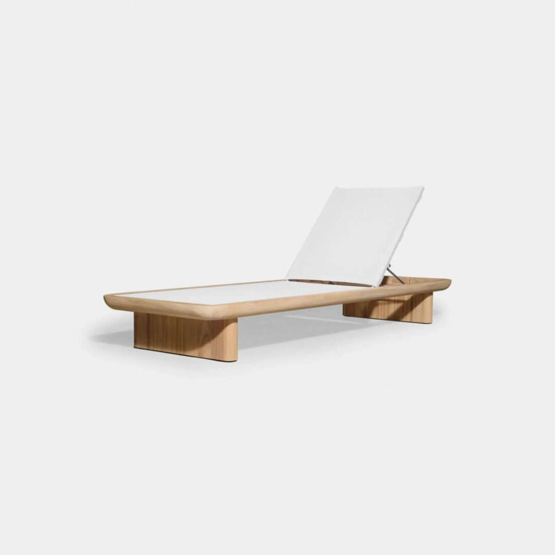 Our Victoria Teak collection balances sculptural curves and right angles for true simplicity of proportion. The Victoria Sun Lounge is poolside relaxation — lounge on an all–weather Batyline mesh sling suspension in Silver or White for comfort and total adjustability, no cushion required (add one if desired). With a striking rounded frame in solid natural Indonesian teak echoed by the rounded edges of the plank legs, this contemporary outdoor sun lounge brings harmony to a variety of spaces.
