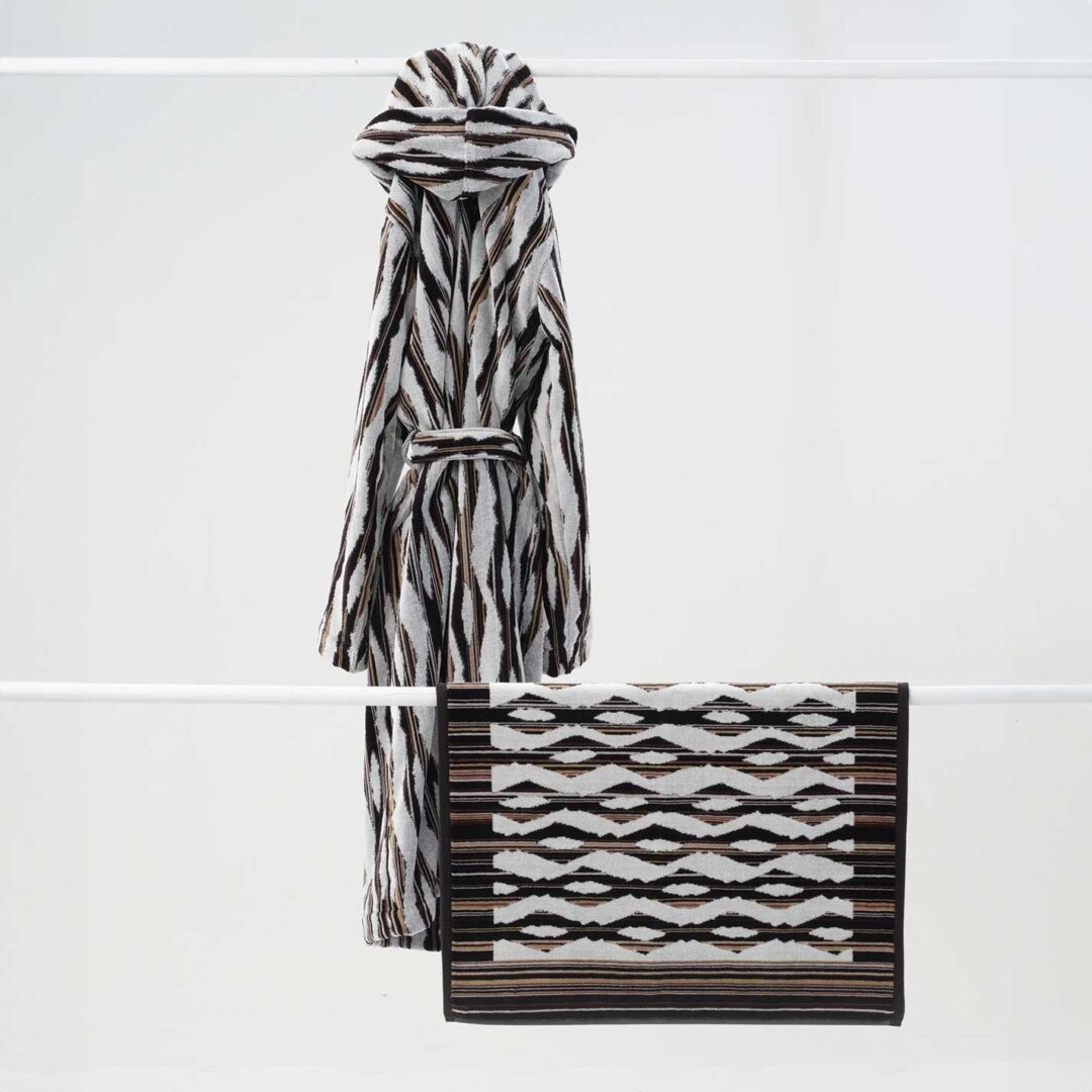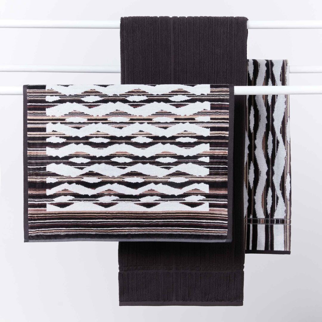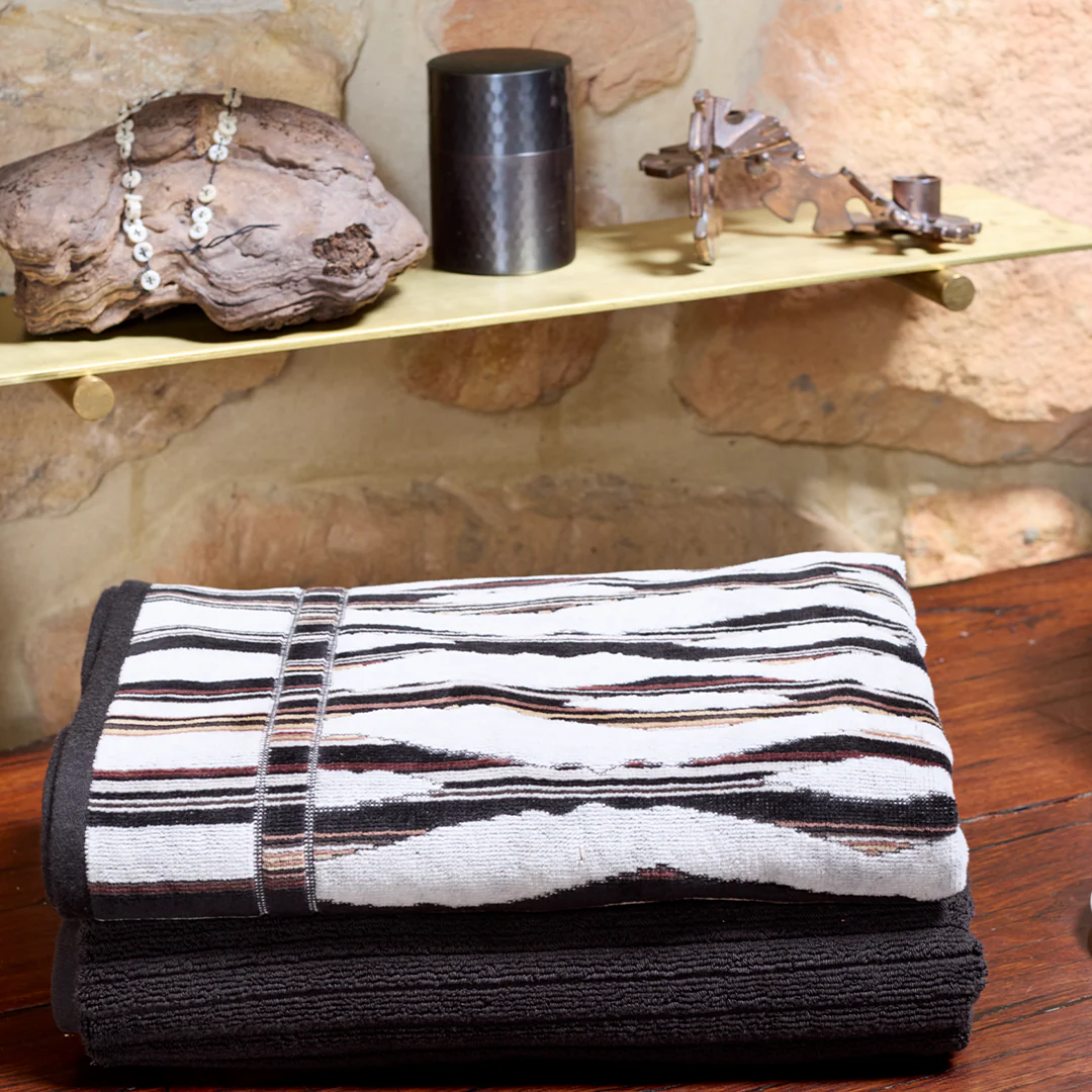 Echoing the high contrast of moonlight on water, Ripple Dark is predominantly black and white with neutral highlights. Woven in a luxurious combination of velour and absorbent terry finishes.
