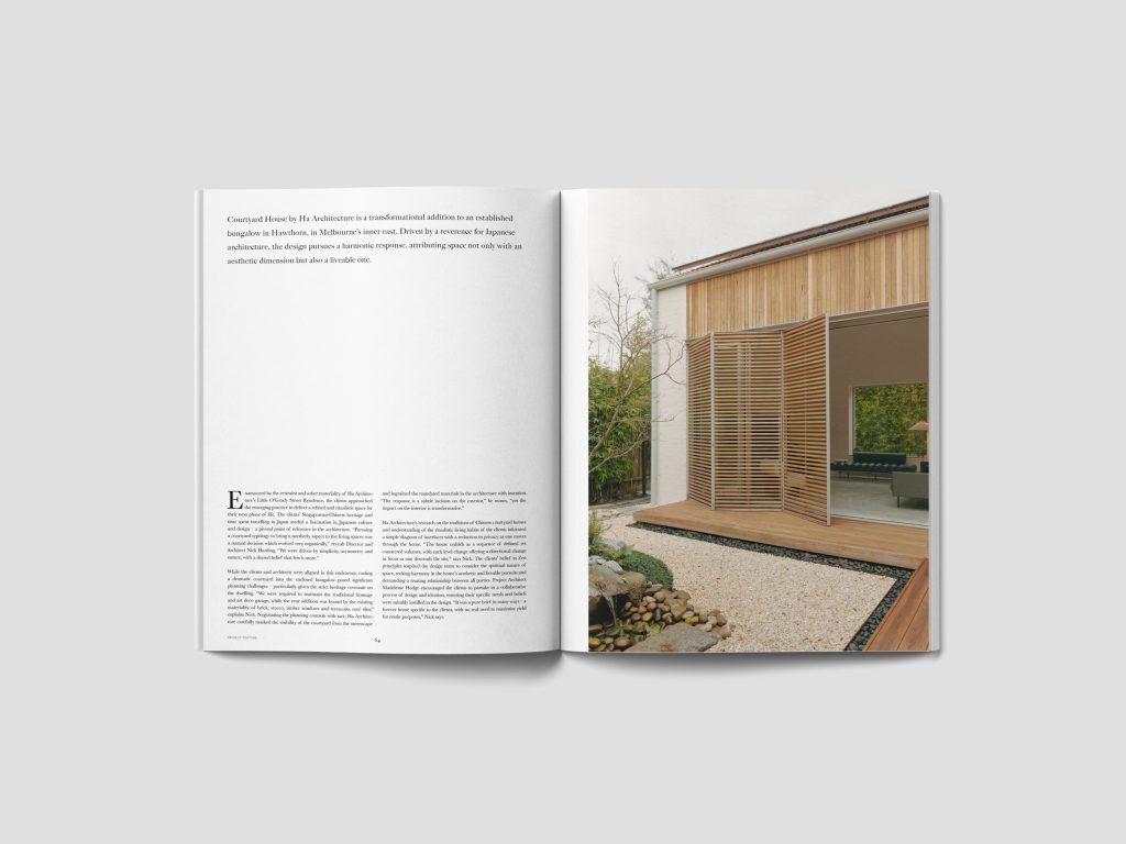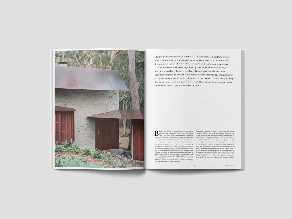 Issue No. 07 features new work from Architecture architecture, Jack McKinney Architects, Shaun Lockyer Architects, Ha Architecture, Workroom, Other Architects, Placement, Tecture, Christopher Elliott Design and more. Older projects from Edition Office, Woods Bagot and John Wardle Architects are also featured. Featured on the cover, House at Flat Rock by Billy Maynard, is a home with a purpose to create a complete immersion in nature. Every inch of the building is bespoke and represents an extreme commitment to attaining complete simplicity, achieved by drawing on the expertise of numerous collaborators. This issue also includes profiles on stylist Megan Morton, artist Stanislava Pinchuk, architect Fiona Dunin of FMD Architects and many others.