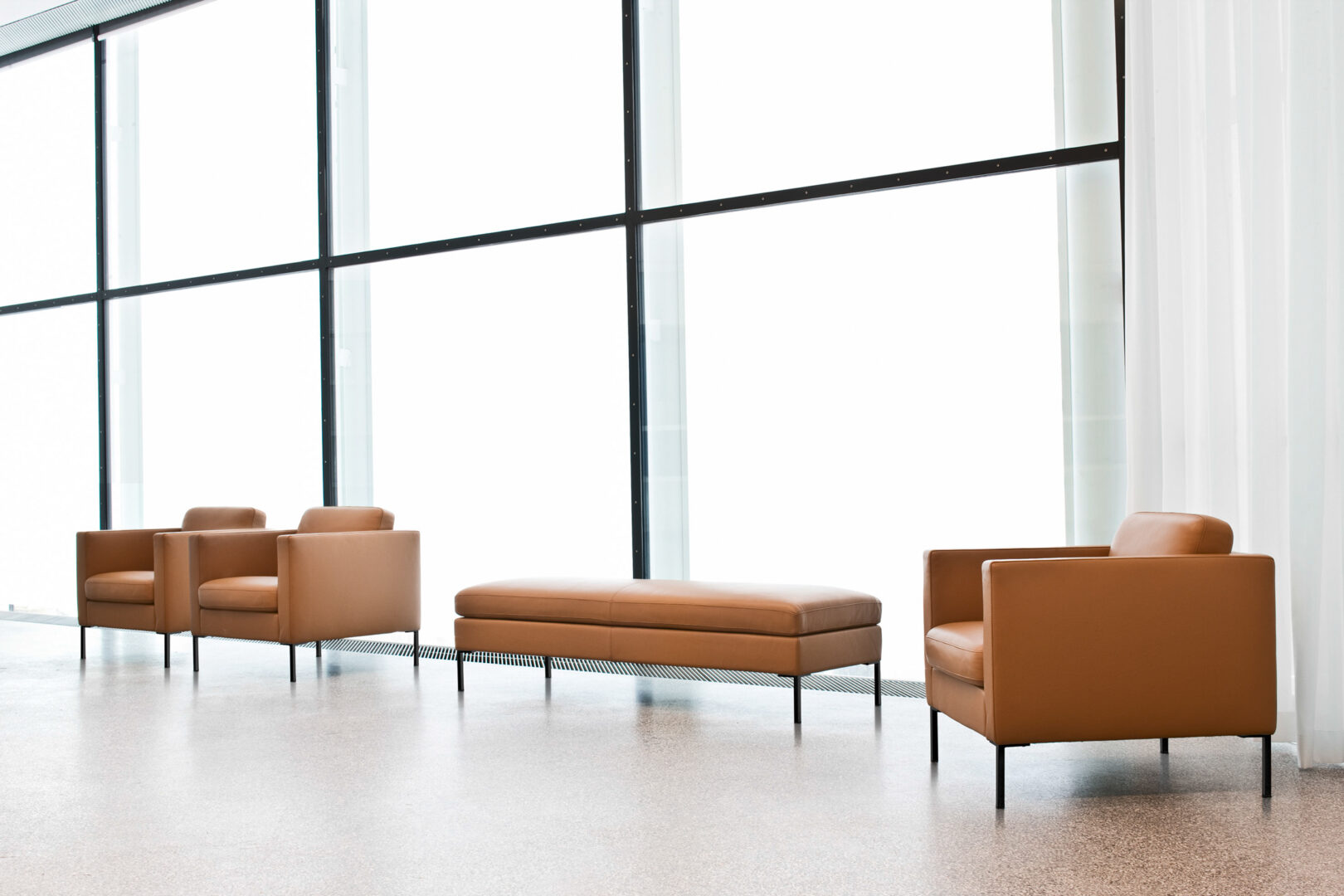 All of the armchairs, sofas and benches in the Anytime selection have slender feet. The line has earned classic status thanks to its understated, elegant appearance.