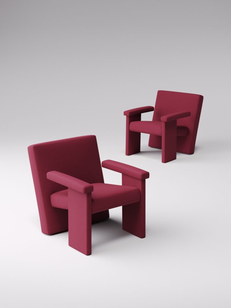 The backrest, a distinctive element with a striking 70-degree inclination, connects to the seat – broad and well-defined – through metal reinforcements that provide stability and clean lines. The armrests continue Agetti’s design concept by being interrupted, thus creating the feeling of a natural void.