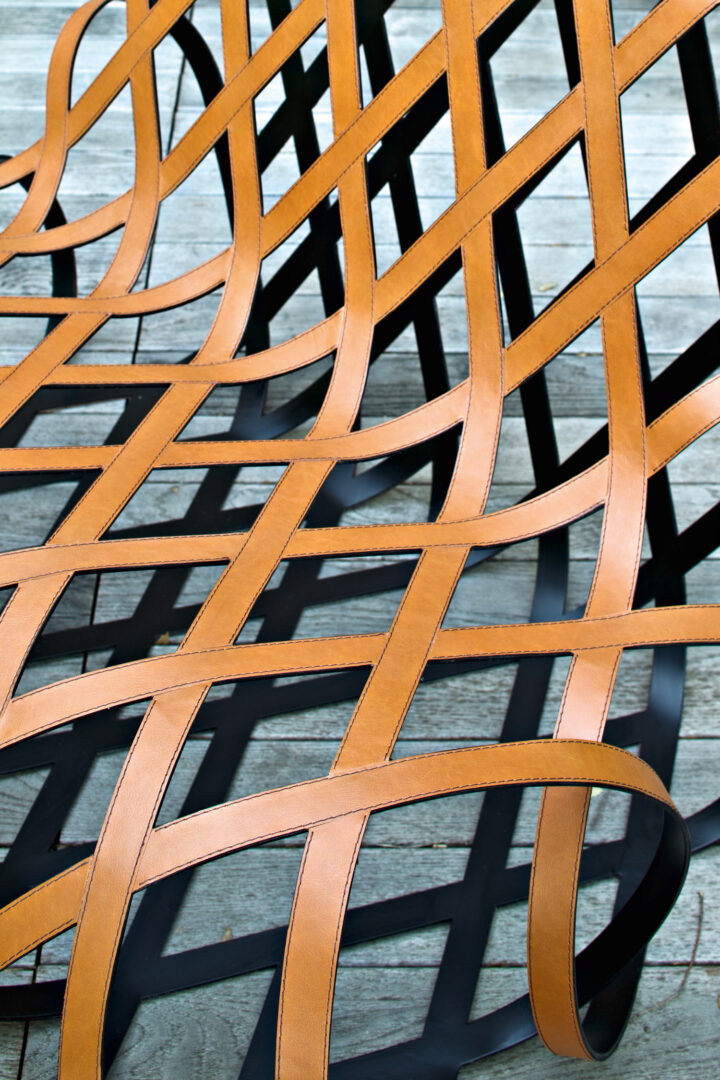 While the steel frame may call to mind a typical padded armchair, laser shaping is used to create highly distinctive rhombic gaps.