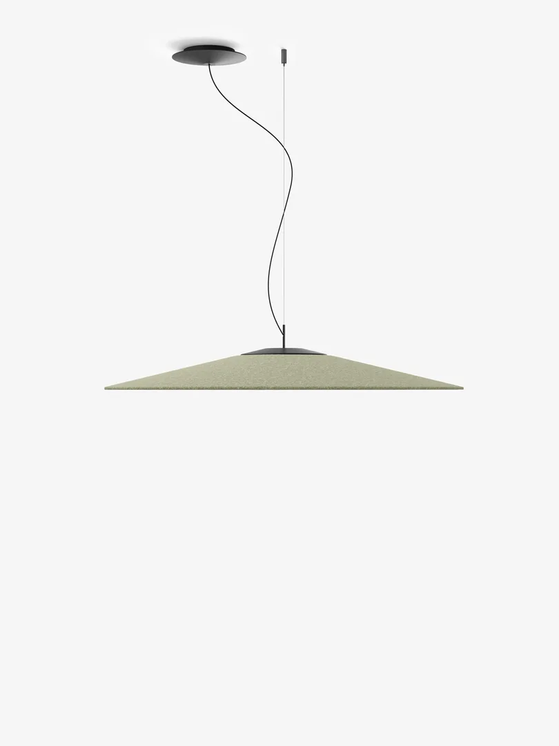 Along with the high-tech lighting engineering performance which distinguishes it, Koinè enjoys yet another innovative element in the sound-absorbing version. The reflector is a felt cap (60% recycled) which not only has an important decorative role, but also allows increased acoustic comfort in the vicinity by reducing the time of sound reverberation. An aluminium portion inside covers the surfaces and contributes on one hand to holding the felt in place, and on the other hand to dispersing the heat of the light source.