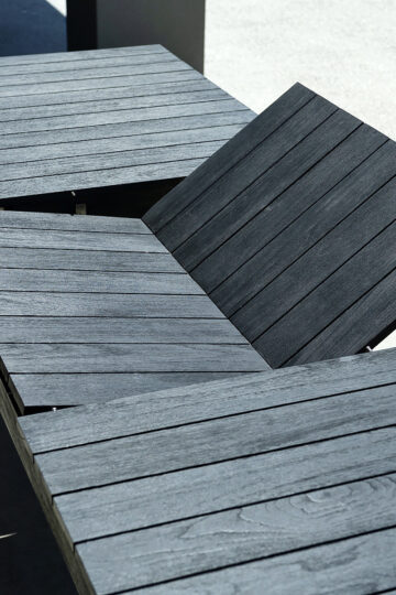 For this home, an unorthodox coastal retreat with its concrete exterior, monolithic columns and geometrical lines, Henri Living's in-house designer, Lua Henri chose large-scale furnishings that make their weighty presence known. “I love Harbour Outdoor, the Australian family-run business, known for its contemporary design, high-quality materials, craftsmanship, and superior durability,” she says. "Instead of worn-out wood and flimsy metals, we’re talking timber, iron and fade-resistant fabrics that will stand up to whatever summer throws at it. Each piece is handcrafted in their Sydney workshop and seamlessly blends traditional and modern elements that pay homage to modern Australian beach houses."