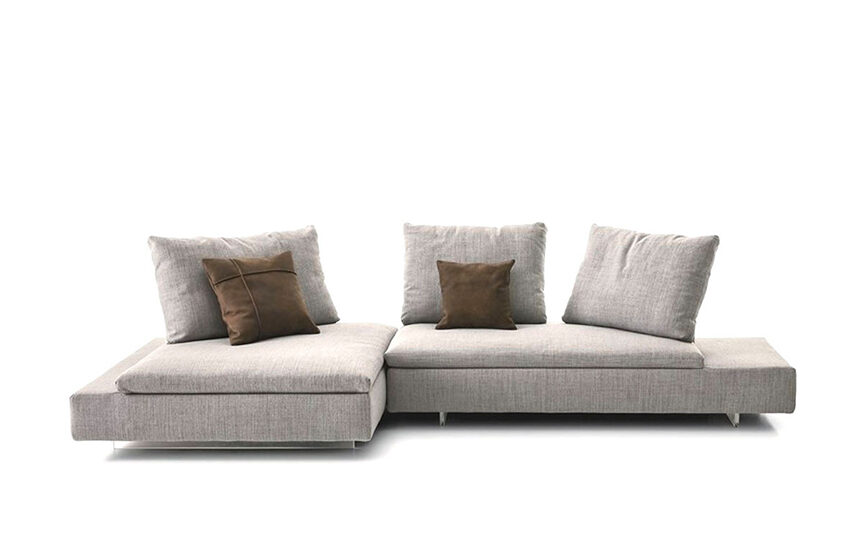 Limes New is a sofa that upholds Saba’s philosophical approach to a larger furnishing project: “Everything slides, everything changes” elaborates Parmenide, who ignited the creative process and guided it through the research phases from the early 2000’s. Limes New is an invitation to go beyond the conventions of predefined space, showcasing how it can become something else altogether simply by moving the back rests. Limes New is a story to tell renewed through sartorial and technical detailing: the asymmetric cut of the back cushions improves support in the lower back. Research into new materials allows the sensation of softness from the goose down filling to come through and guarantees a superior comfort. The volumes have been subtly updated in line with the contemporary aesthetic to include cylindrical armrests in homage to the classic latin heritage. Methacrylate and double depth floating feet.